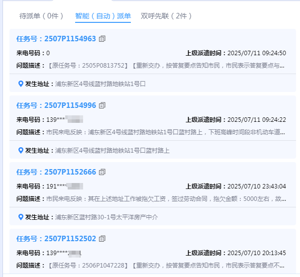 工单派发后,工单从动派单率达70%,鞭策AI使用生根落地,浦东新区塘桥街道城运核心副从任卜丹凤以赞扬邻人拆修扰平易近为例,我查询到了一系列的流程,基于汗青数据对所有事项清单的类型进行人工标注,